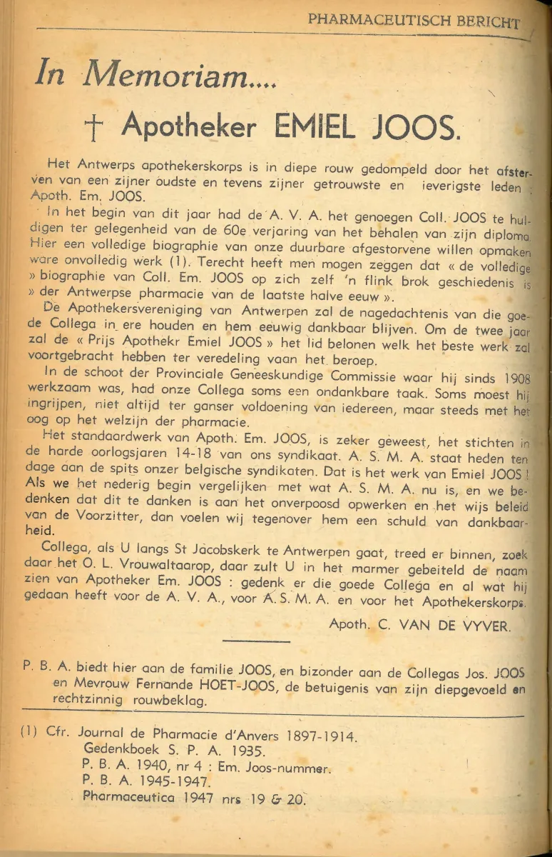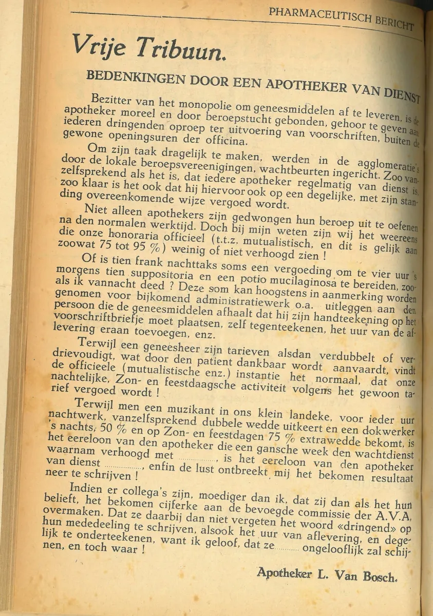 Kruimelpad Home AFT-100 Het Antwerps Farmaceutisch Tijdschrift bestaat al 100 jaar! We nemen je graag mee doorheen de geschiedenis van het AFT. Verenigingsleven door de jaren heen ARTIKEL 1 Belangenbehartiging door de jaren heen ARTIKEL 2 Rol van de apotheker door de jaren heen ARTIKEL 3 Wetenschappelijke benadering door de jaren heen ARTIKEL 4 Reclame door de jaren heen ARTIKEL 5